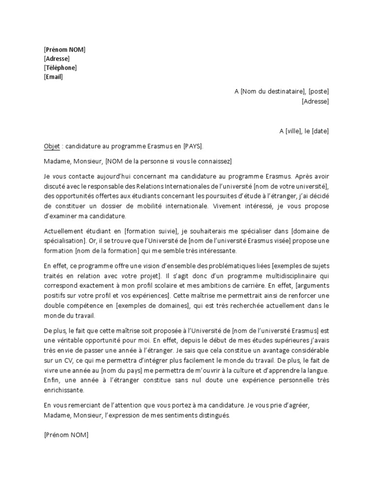 La lettre de motivation est un outil important pour toute candidature, ne la négligez pas. Dans une lettre de motivation destinée à demander une bourse d'étude pour les étudiants, vous devez vous concentrer sur 4 parties. Si le cv est relativement simple à rédiger, écrire une bonne lettre de motivation nécessite plus d'attention et de méthode, c'est un passage. Toute lettre de motivation comporte des points importants à ne pas oublier et des pièges qu'il faut impérativement éviter. Vous n'avez plus qu'à le télécharger et à le remplir avec vos propres informations via un logiciel de.